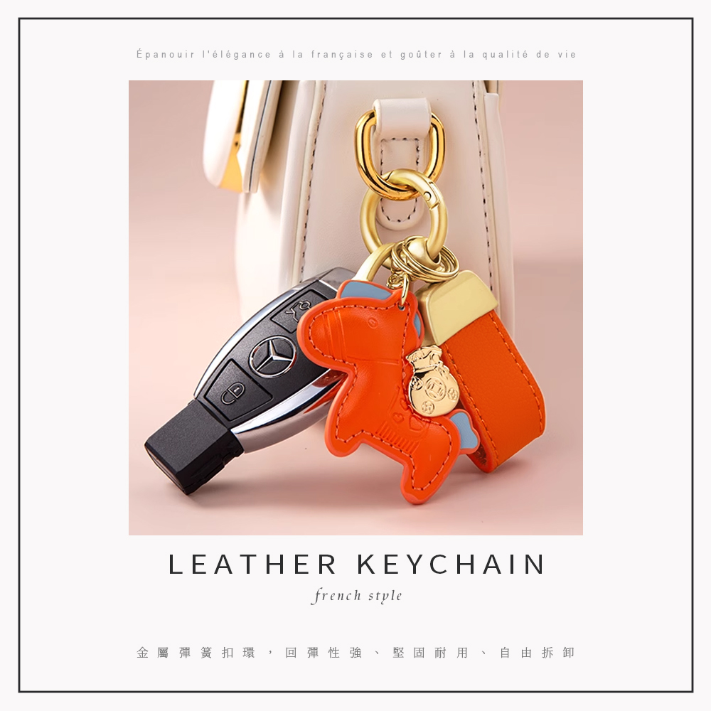 這款法式小馬皮革鑰匙扣