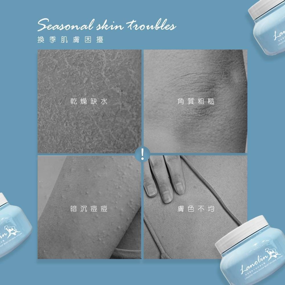 任何季節,臉和身體的保濕滋潤都不可少,春寒低溫、夏日冷氣、秋季乾燥、冬天冷風,都會帶走臉上身上的水分,尤其建議中性乾性肌膚,在保養最後一個程序加上綿羊霜鎖水保濕!