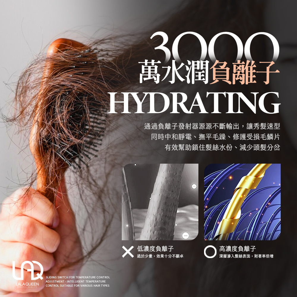 高濃度負離子:深層滲入髮絲表面,附著率倍增