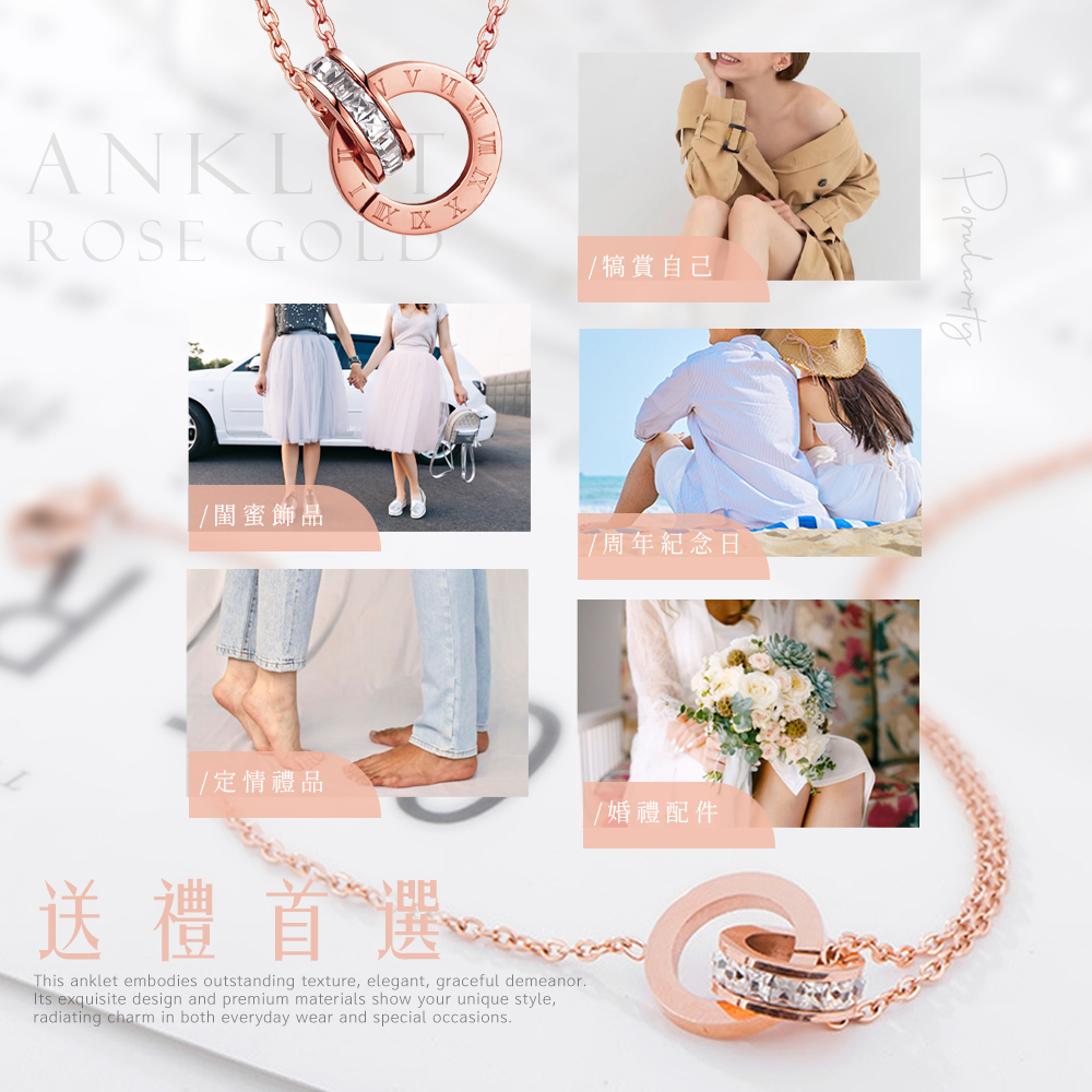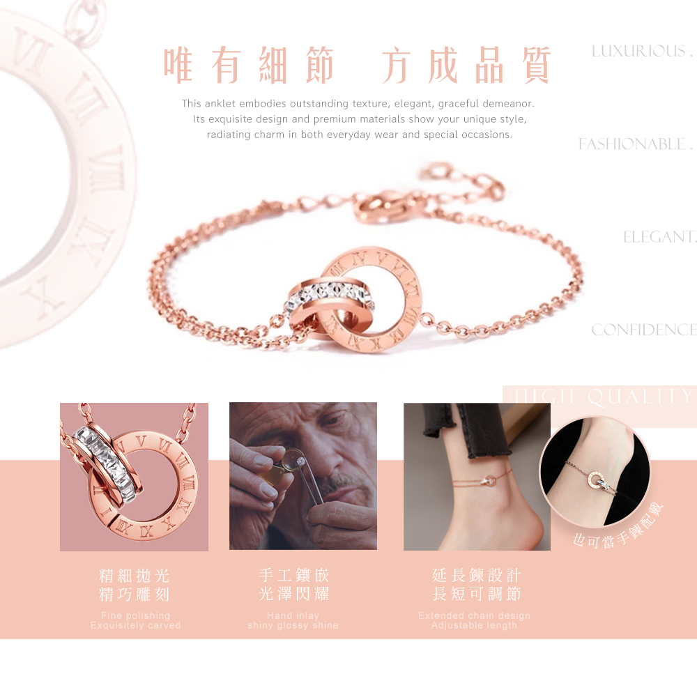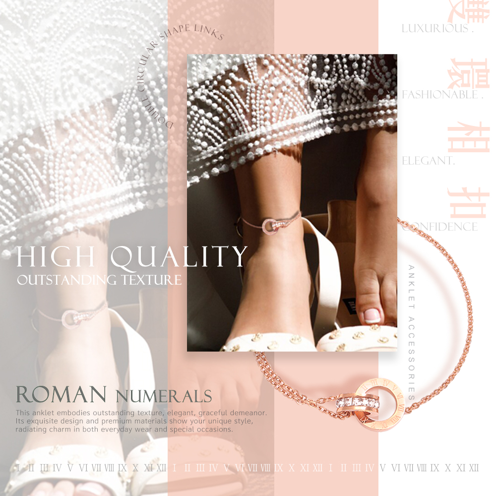 配戴這款✨雙環相扣羅馬字鑽腳鍊✨