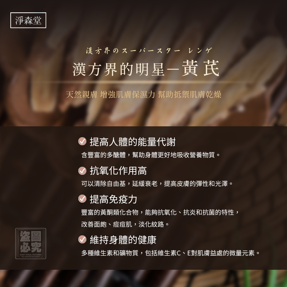✔ 黃芪萃取:含多醣體與微量元素,潤澤舒緩
