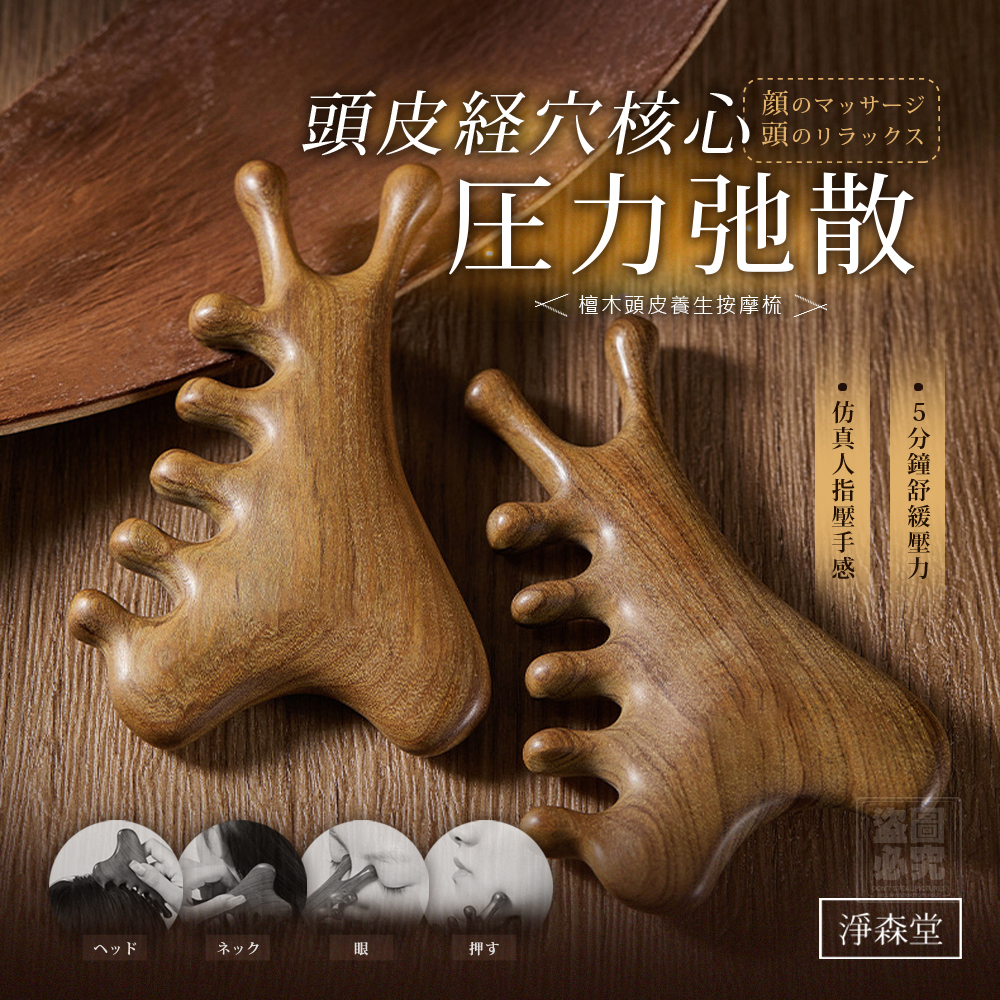 🔥淨森堂 日式檀木頭皮養生按摩梳