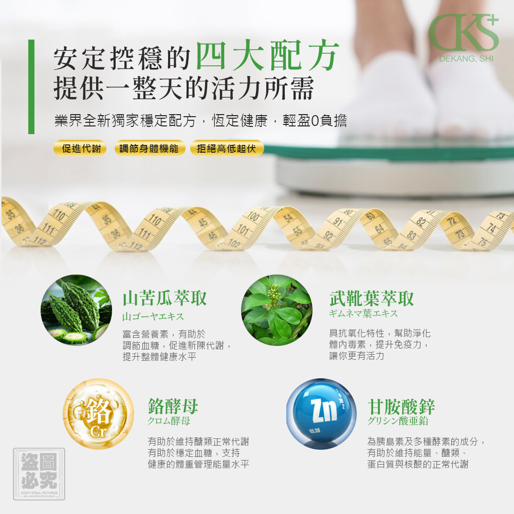 成分:山苦瓜萃取物、武靴葉萃取物、玉米來源可溶性纖維、鉻酵母、甘胺酸鋅、