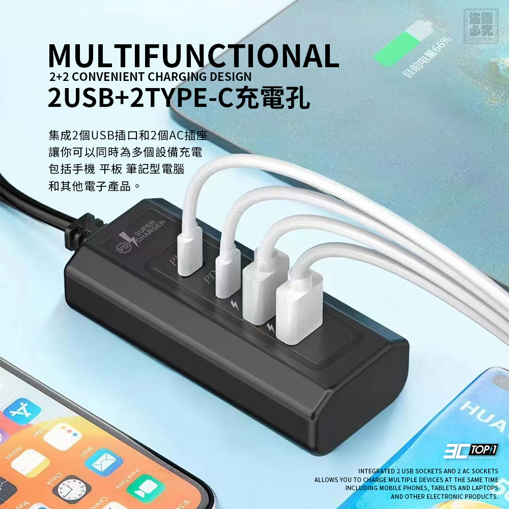 📌2USB+2Type-C多功能設計: