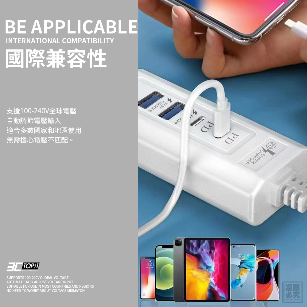 支援100-240V全球電壓