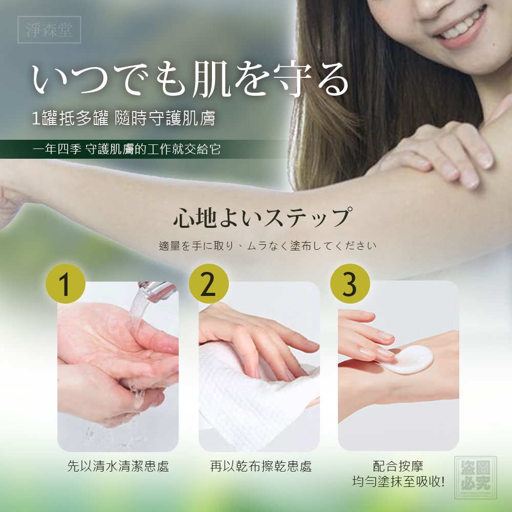 按摩至吸收,每日建議塗抹3-4次。
