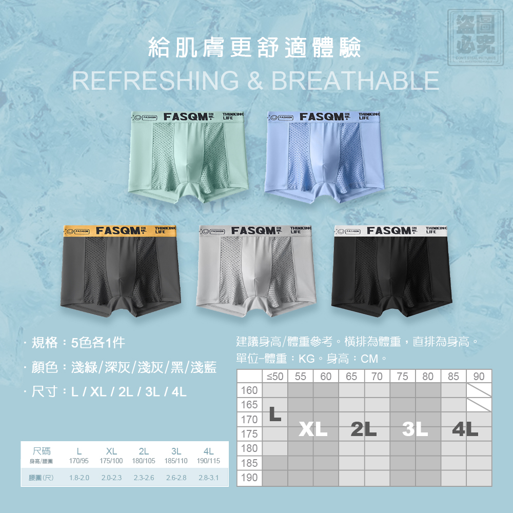 🏆男士無痕冰絲四角褲5件組