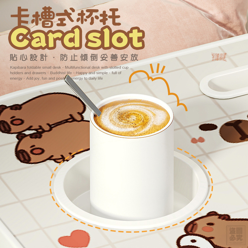 設有專門的卡槽杯托,防止杯子打翻,保護您的書籍和電子設備不受損害。