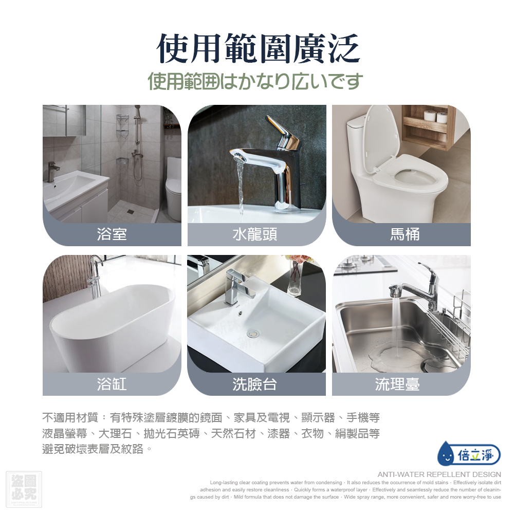 ▪️適用範圍:浴室、水龍頭、馬桶、浴缸、洗臉台及流理臺。
