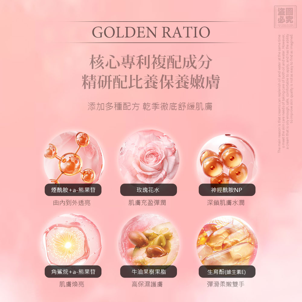 成分:煙酰胺、a-熊果苷、生育酚(維生素E)、玫瑰花水