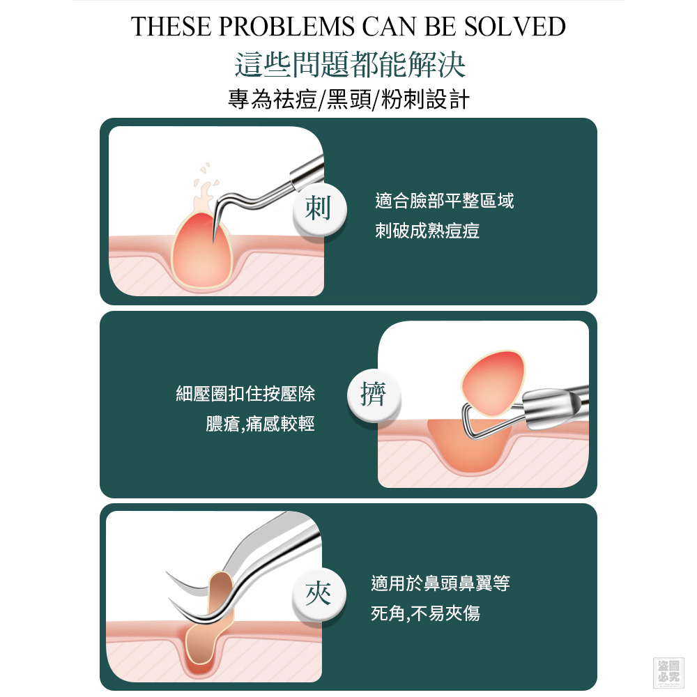 🔸直角粉刺夾:直角輕鬆針對不同位置的粉刺 操作更精準