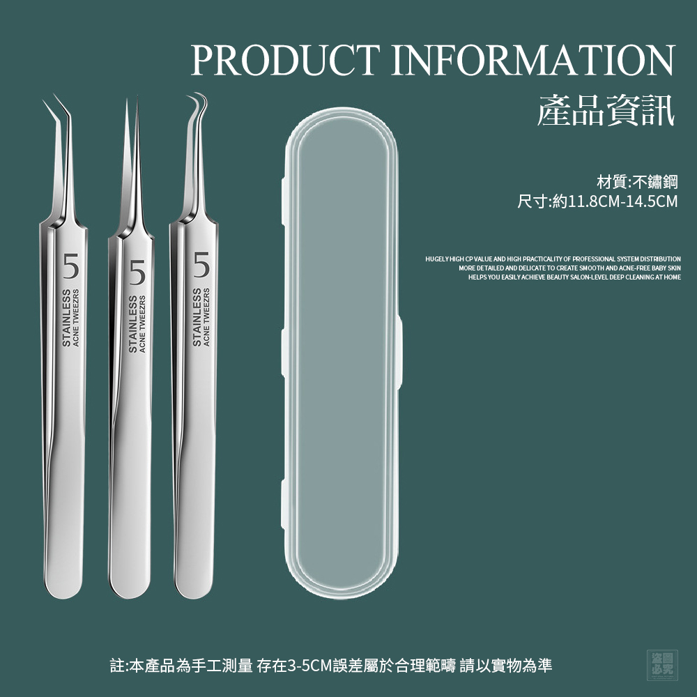 🔥美容院專用 不鏽鋼粉刺夾針3件組