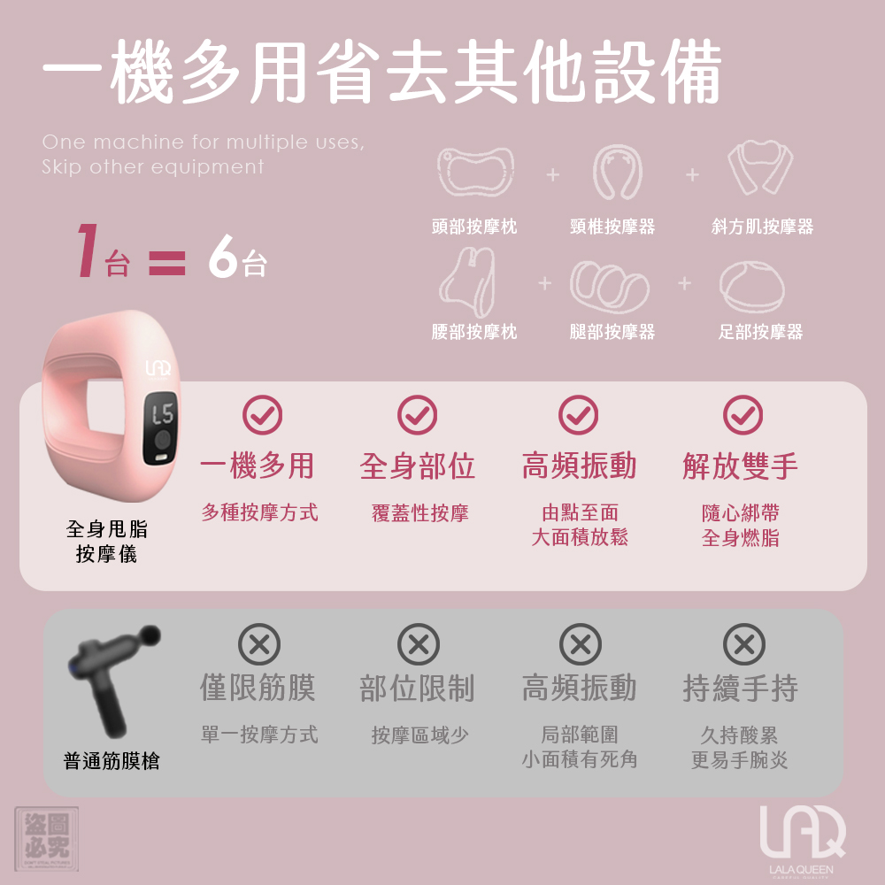 💡 Lala Queen 幫你升級大面積深層震動按摩,一機多用,全身舒壓+塑形一次搞定!