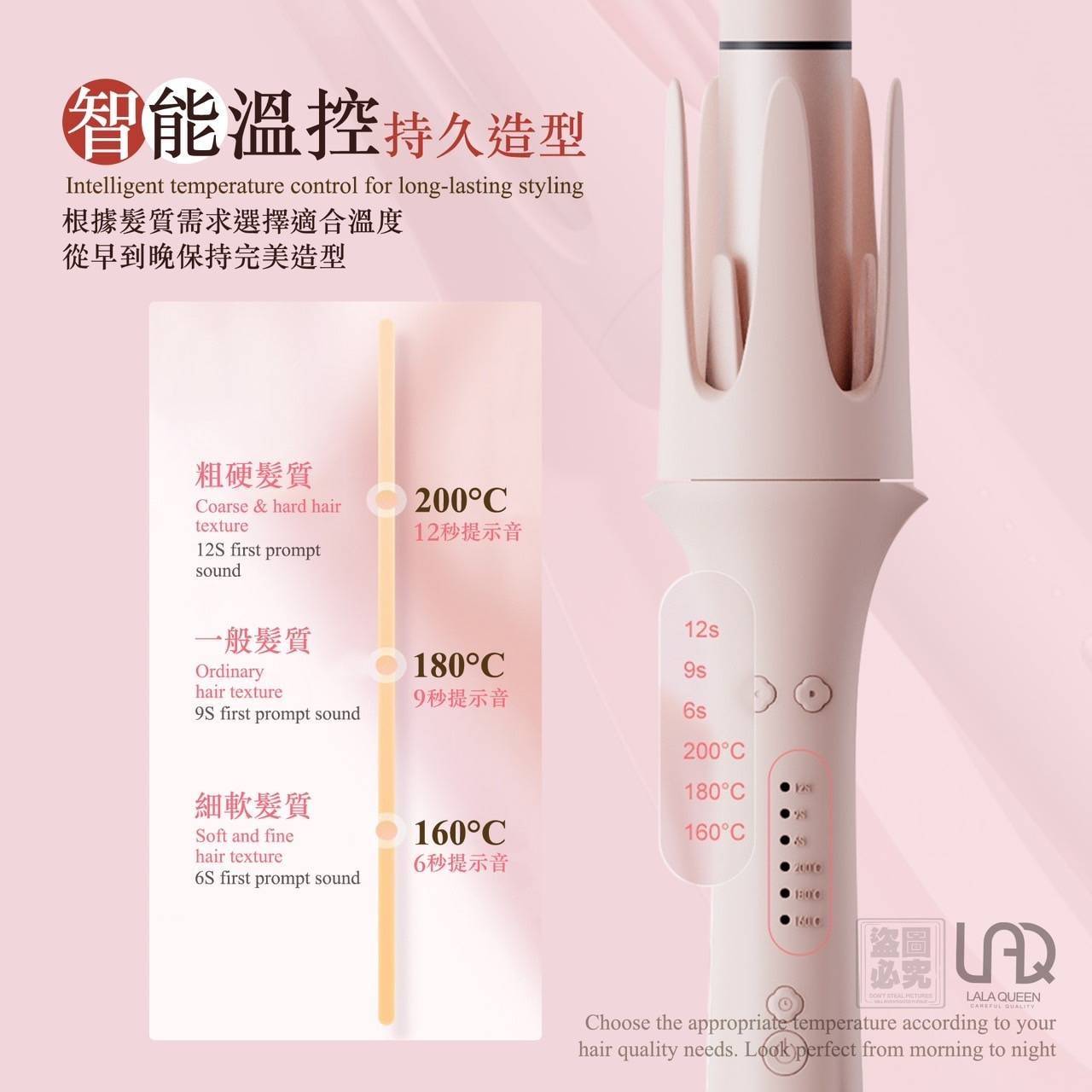 ✅ 恆溫智能控溫 👉 160°C~200°C多檔可調,適合不同髮質!
