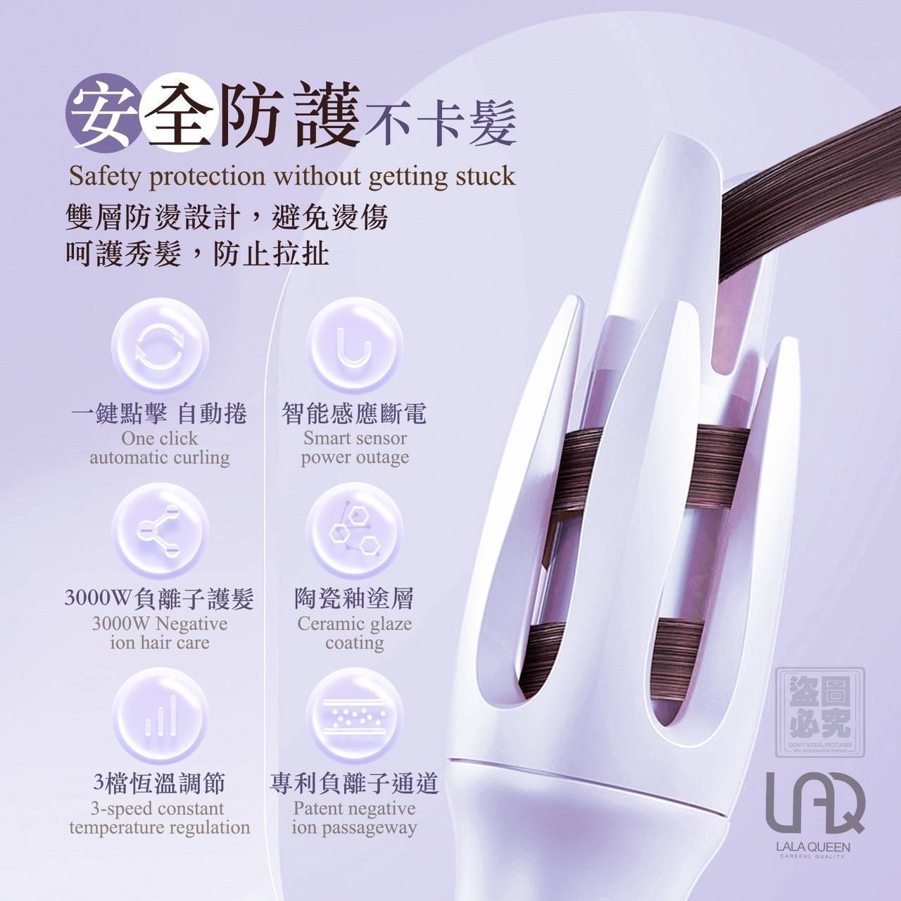 ✅ 自動捲髮技術 👉 一鍵啟動,3D旋轉技術,捲髮不糾結!