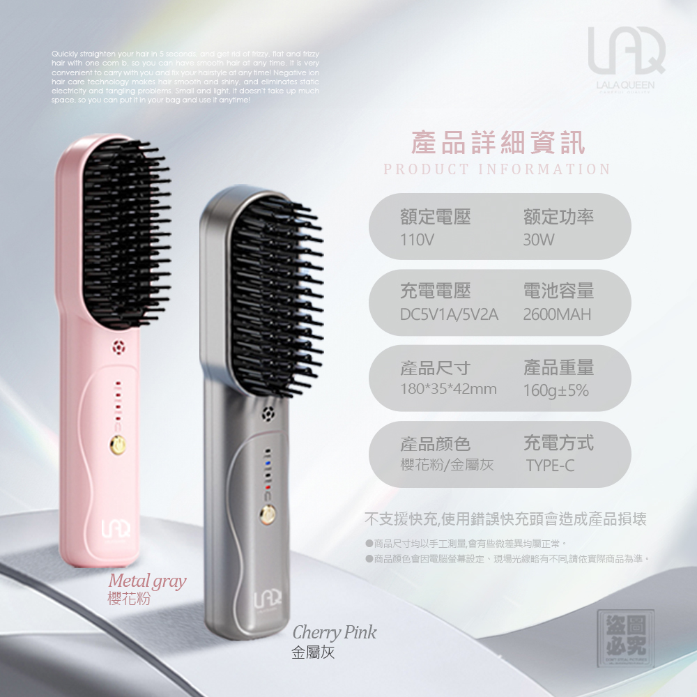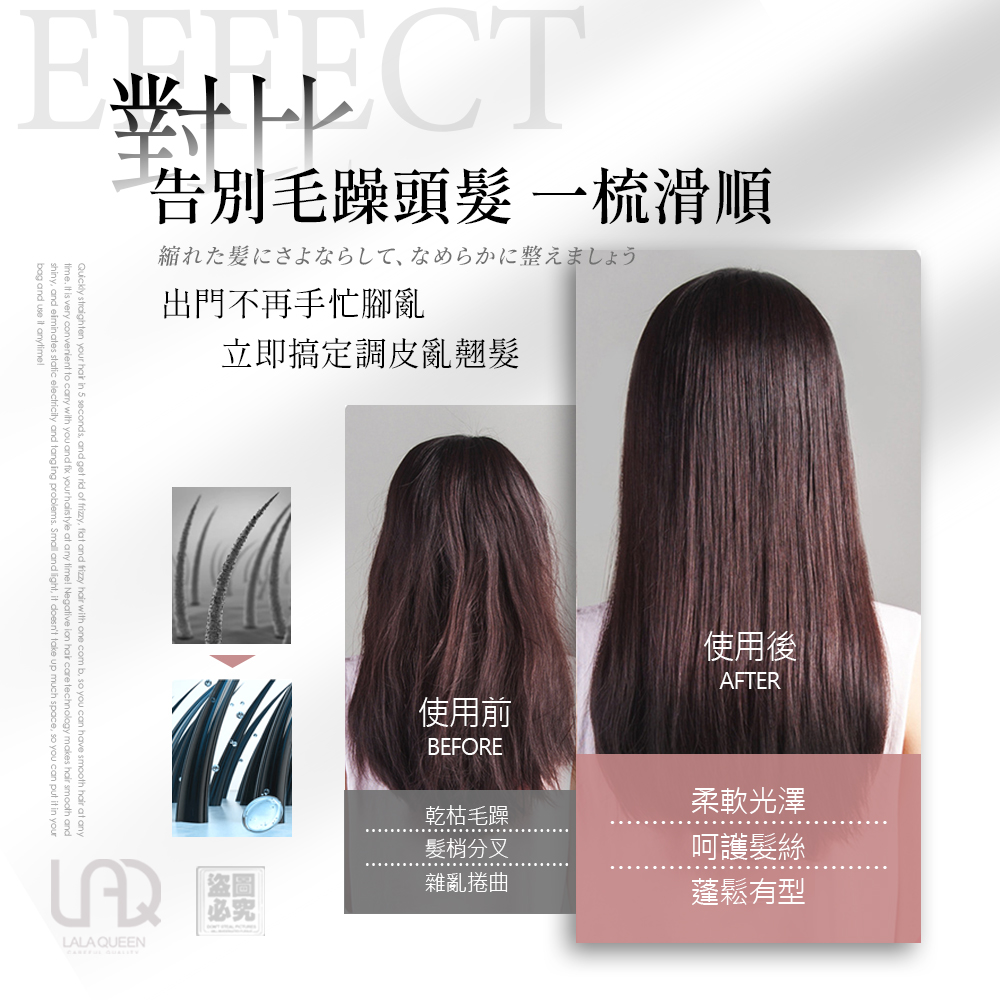 🎁 為什麼選擇 Lala Queen 負離子迷你無線直髮梳