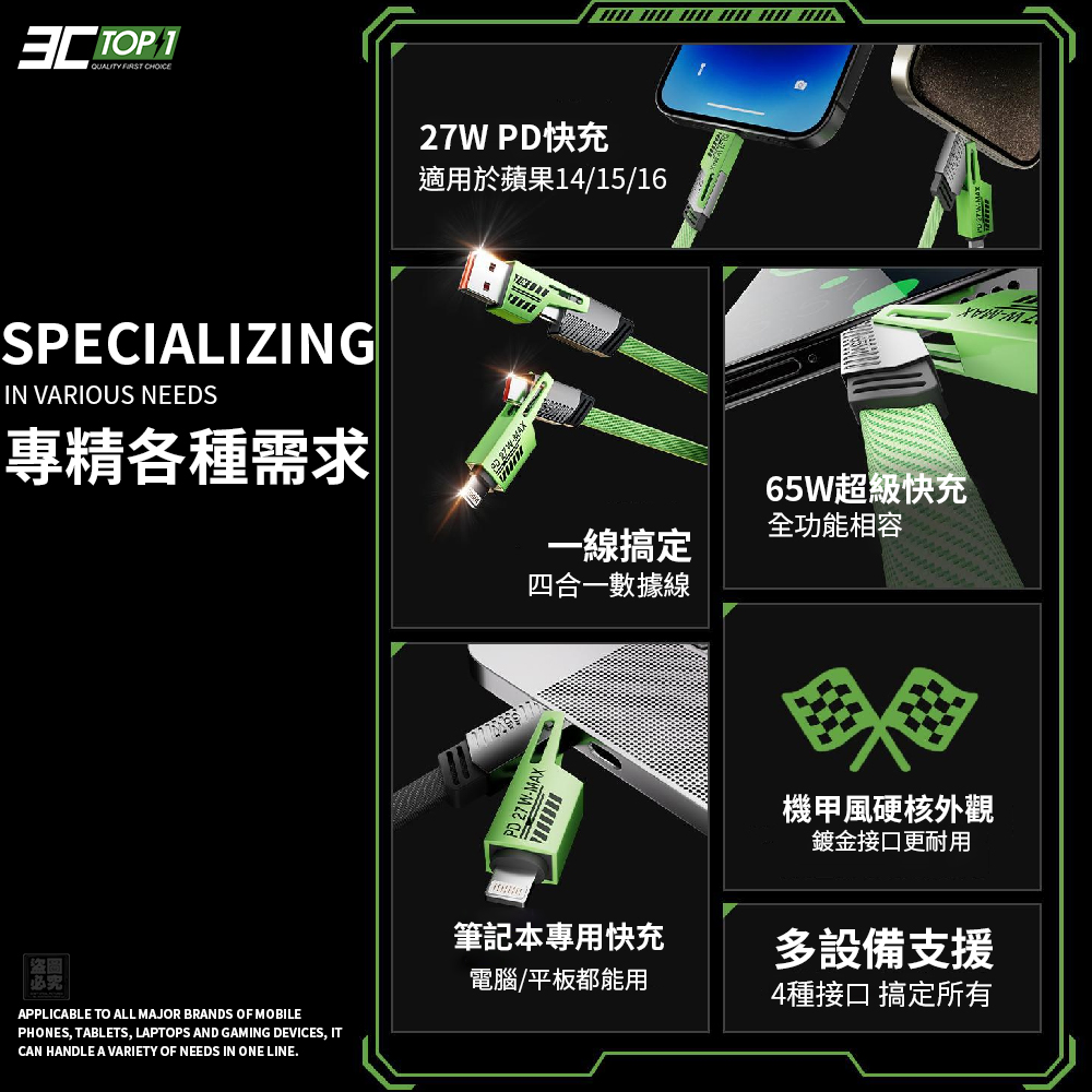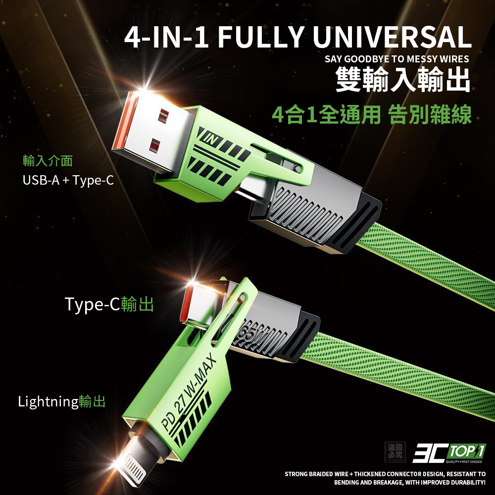 🔥3C-TOP1 4in1智能超快充變形線