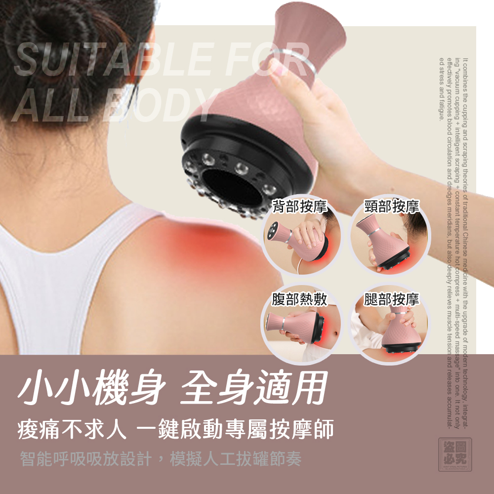 ✨ 一機=4大功能:真空拔罐+智能刮痧+EMS微電流+恆溫熱敷,傳統中醫原理+現代黑科技,酸痛僵硬“吸”走不留情!