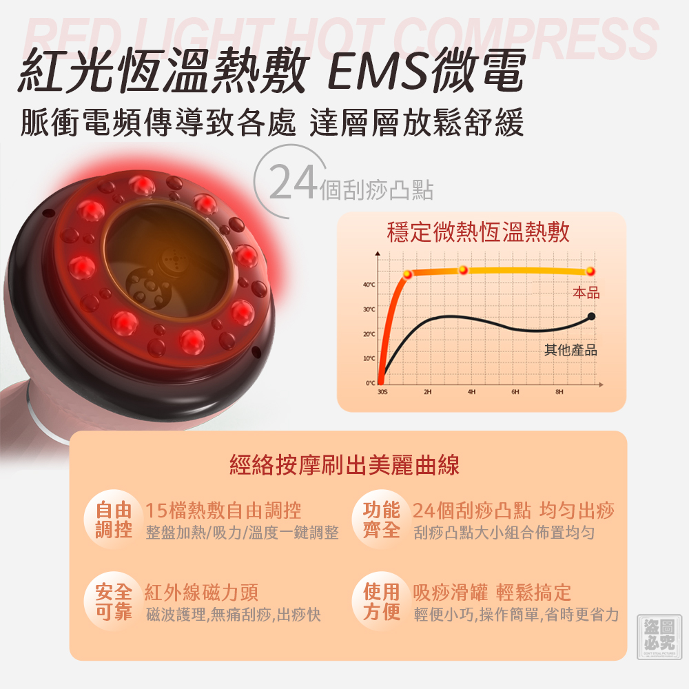 🌡️ 紅光恆溫發熱:24個刮痧凸點同步加熱,像敷熱毛巾+按摩師雙手同時伺候!