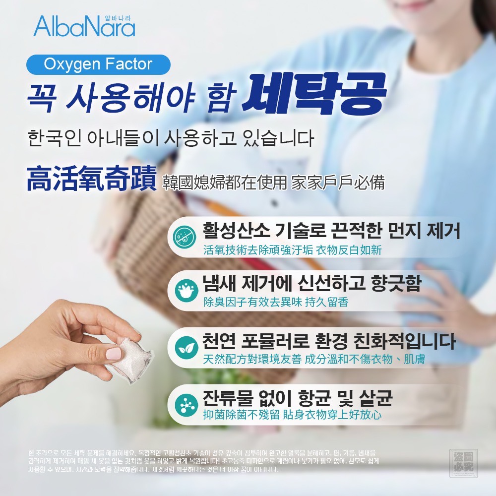 韓國主婦瘋搶AlbaNara雙效漂白酵素洗衣膠囊