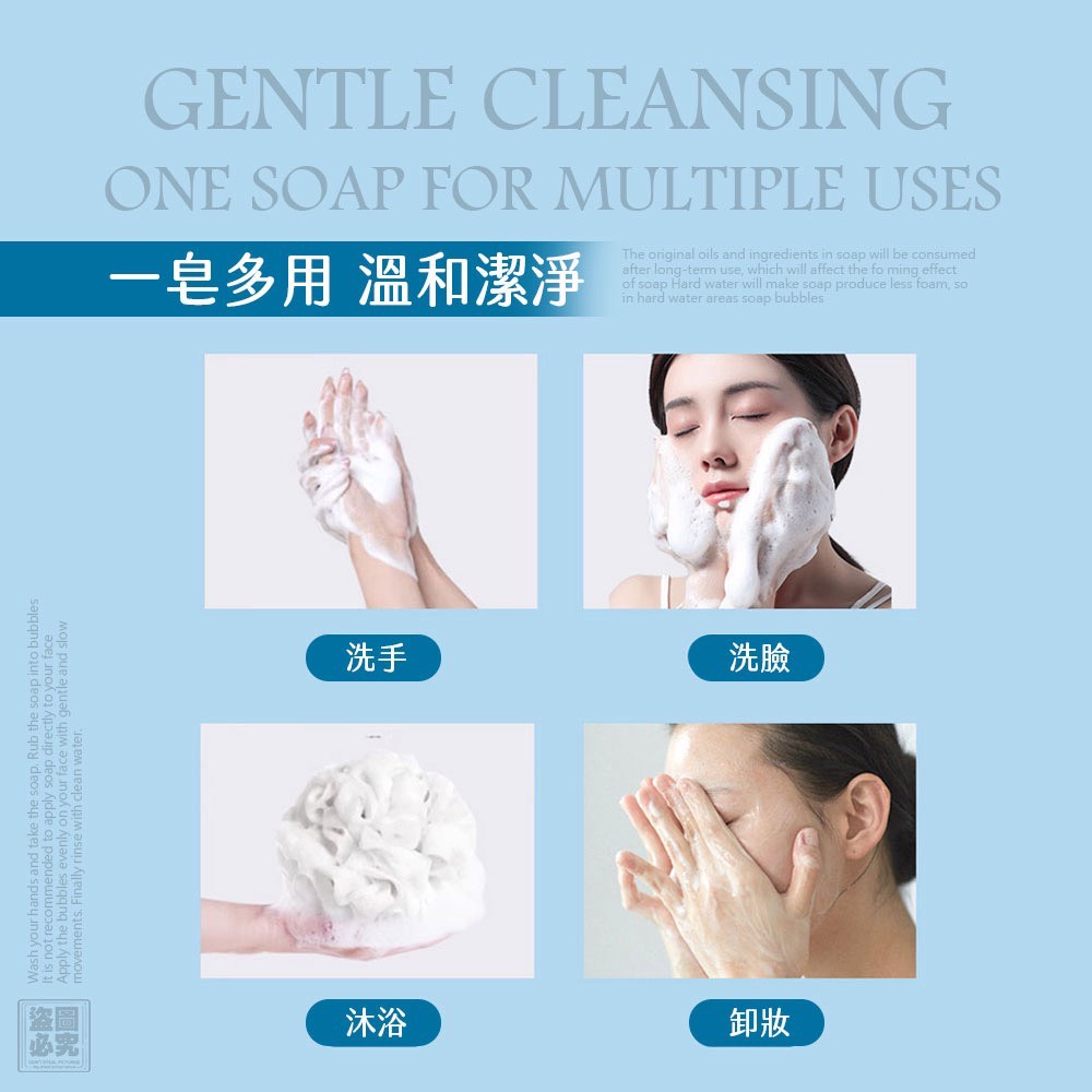 質地細緻純淨,泡沫綿密不咬膚,洗完不乾不緊繃,