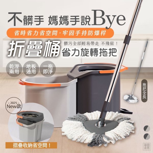 ❤️美國暢銷 折疊桶省力旋轉拖把