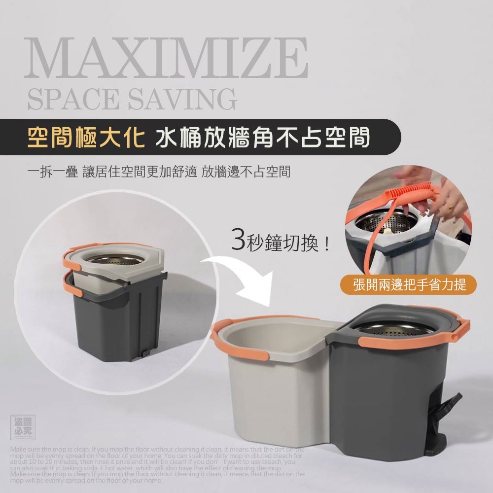 • 商品內容:折疊式水桶×1、拖把桿×1、拖把頭×2(含安裝)