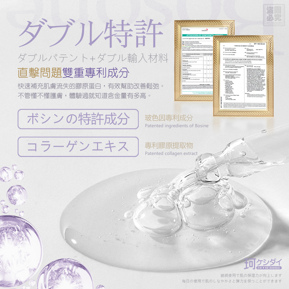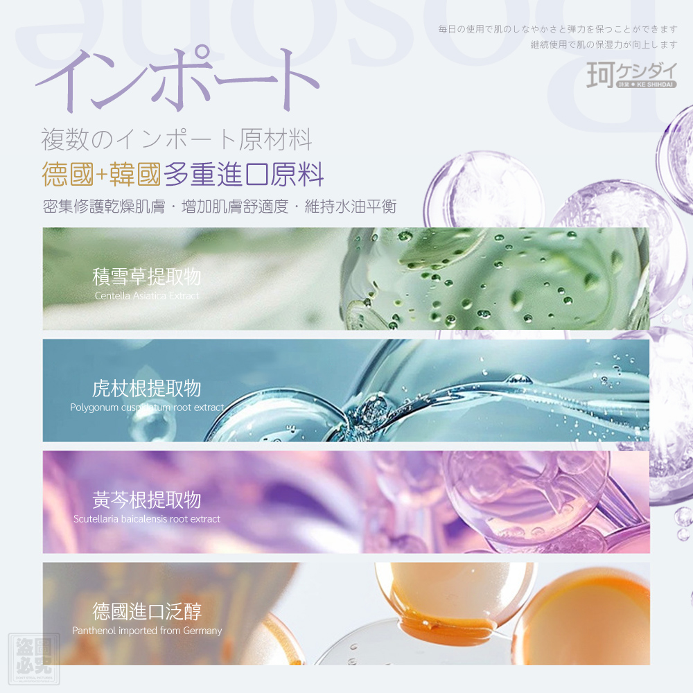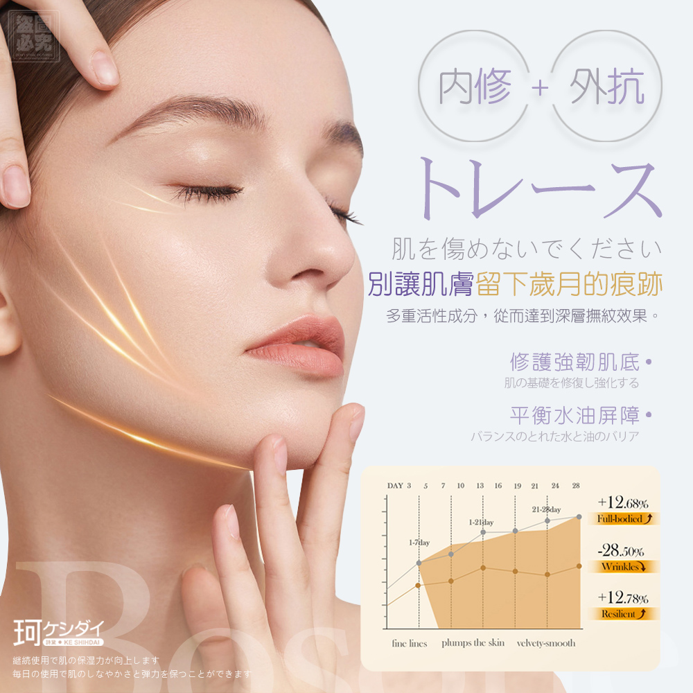 來自日本技術研發,添加話題「玻色因」+多重植萃保養成分