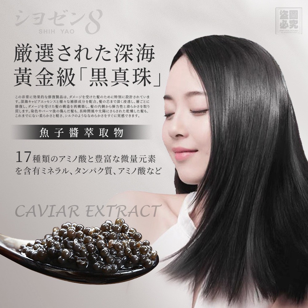 ✔️ 黑珍珠魚子醬萃取|富含17種胺基酸與礦物質,髮絲彈潤升級