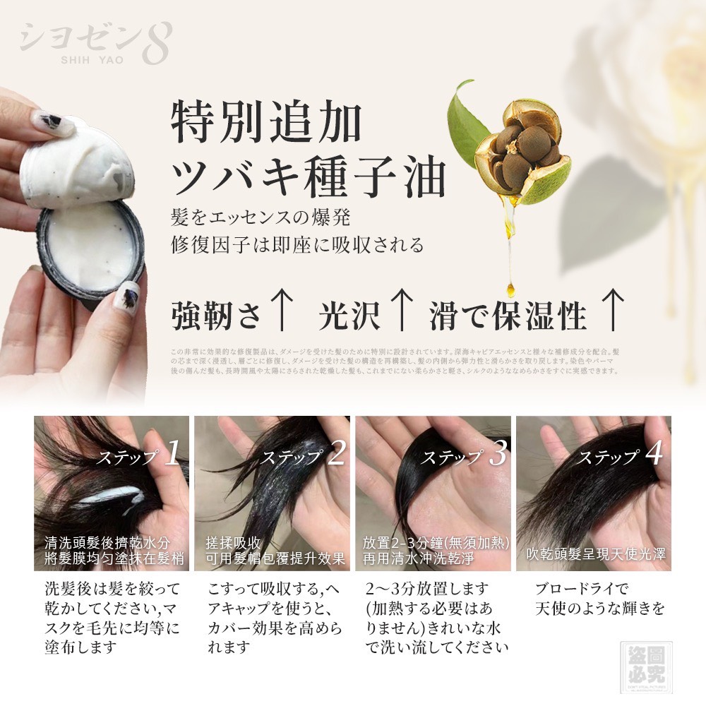 ❤️日本 シヨゼン8 黃金黑珍珠修護髮膜(贈發熱帽)