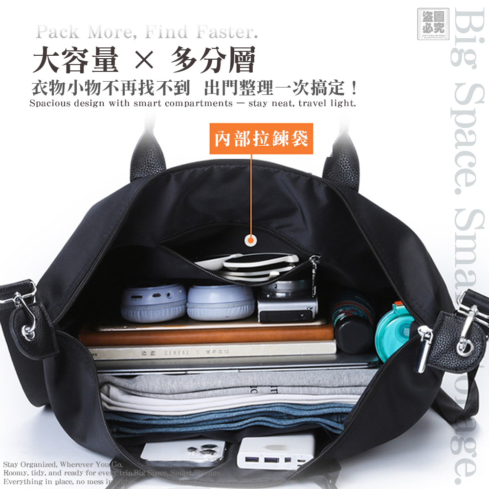 ✔ 大容量多分層設計|衣物、筆電、3C、化妝包都能有條不紊放好