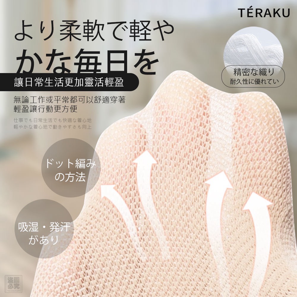 ✔ 請勿長時間穿戴於潮濕環境下,以維持材質彈性與潔淨度