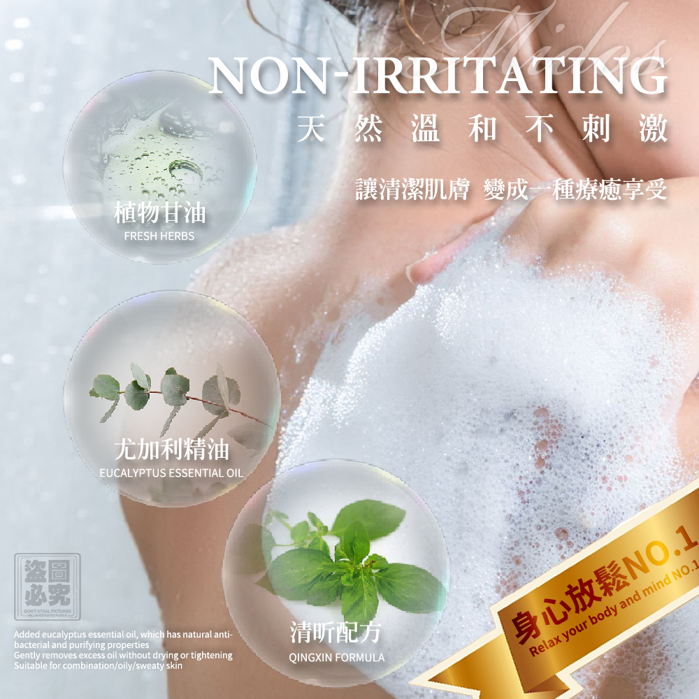 ✨尤加利精油+植物萃取:天然草本來源,清潔同時溫和護膚