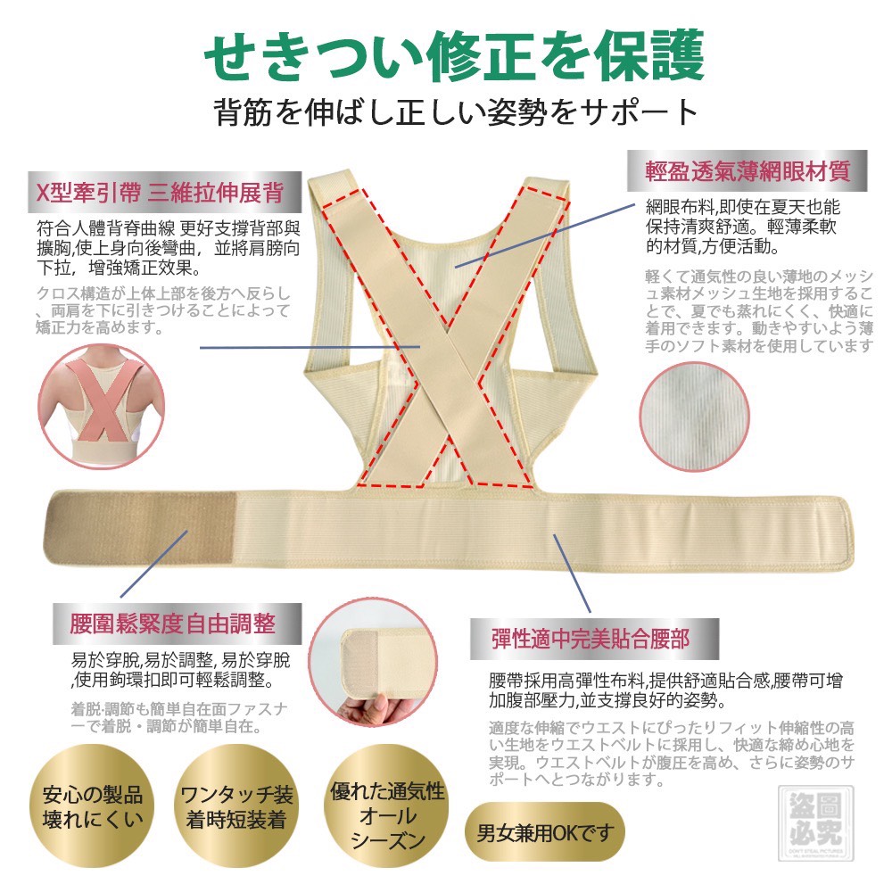 • 商品名稱:日本透氣網布脊椎矯正帶