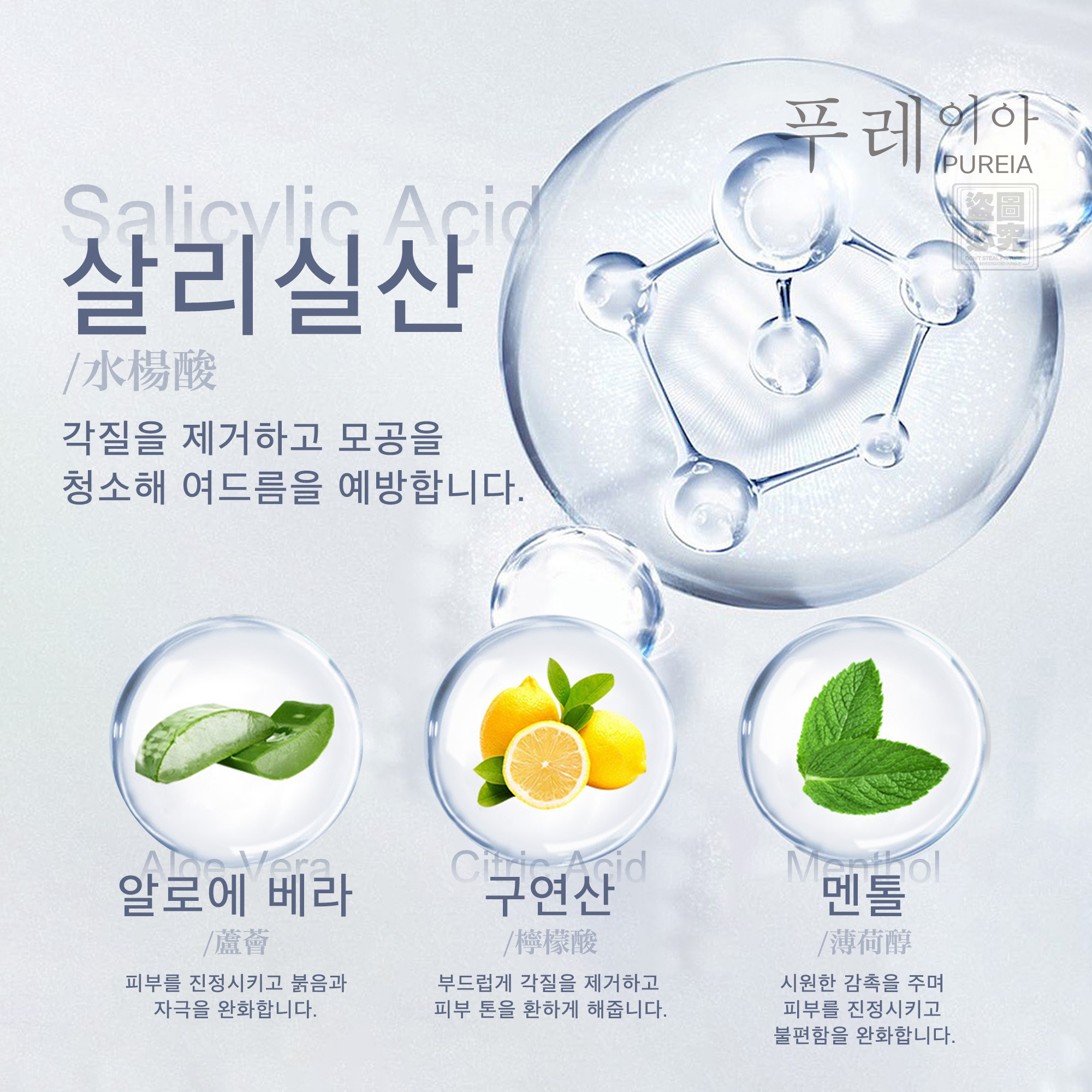 來自韓國熱銷品牌 PUREIA,專為油痘肌設計,每片蘊含滿滿水楊酸+植萃精華,天天擦、天天改善膚況!