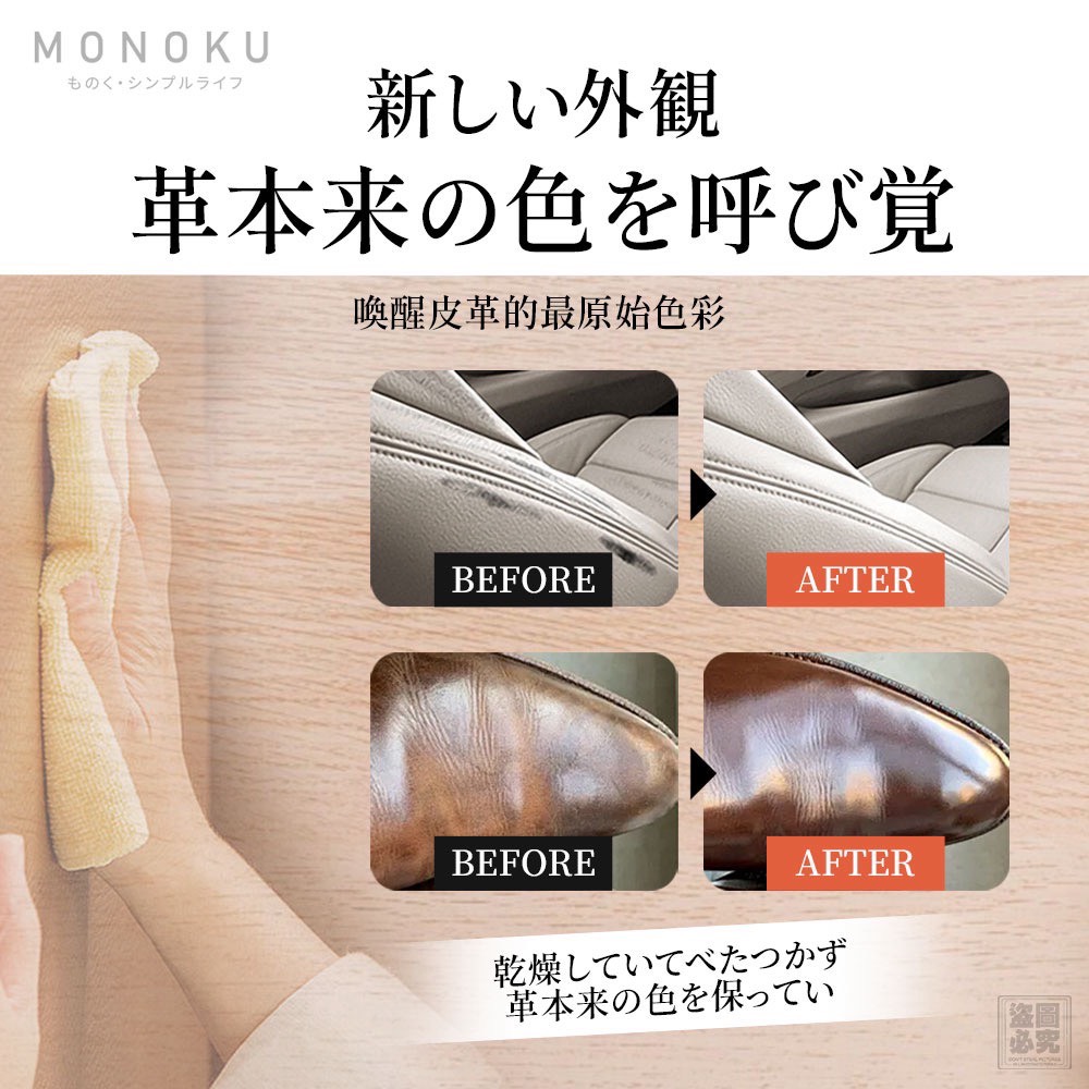 ✔ 擦拭後皮革自然潤澤,不沾手不卡灰