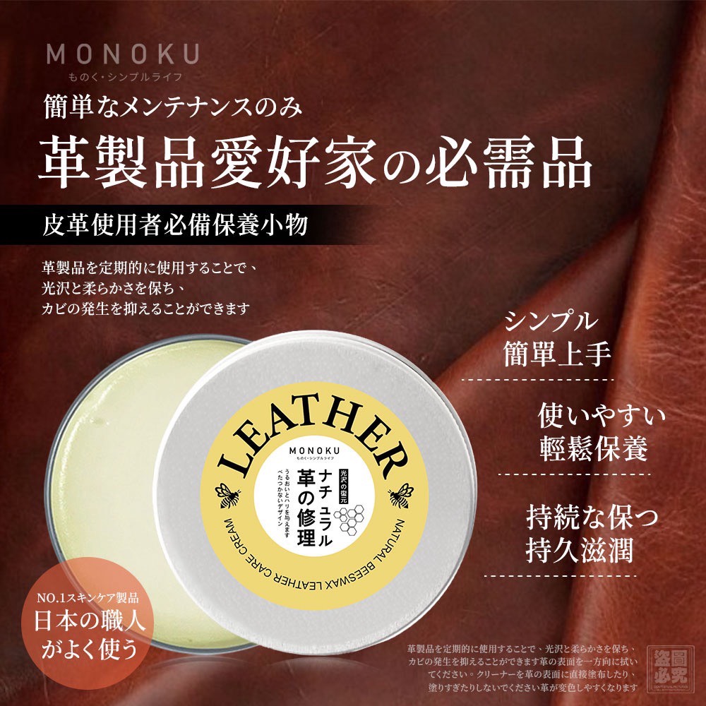 ❤️日本 MONOKU 天然蜜蠟皮革修護膏(20g)