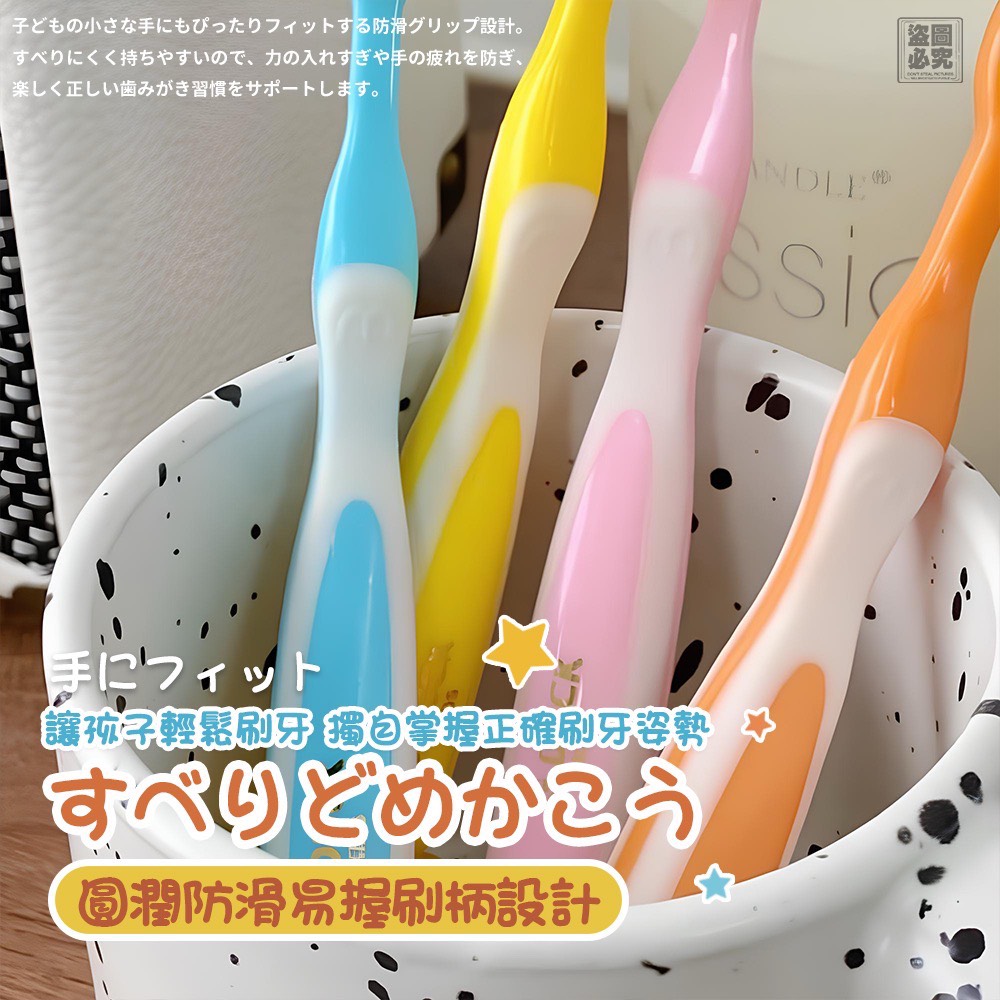 小巧刷頭+防滑手柄,符合兒童手部尺寸,訓練正確握姿