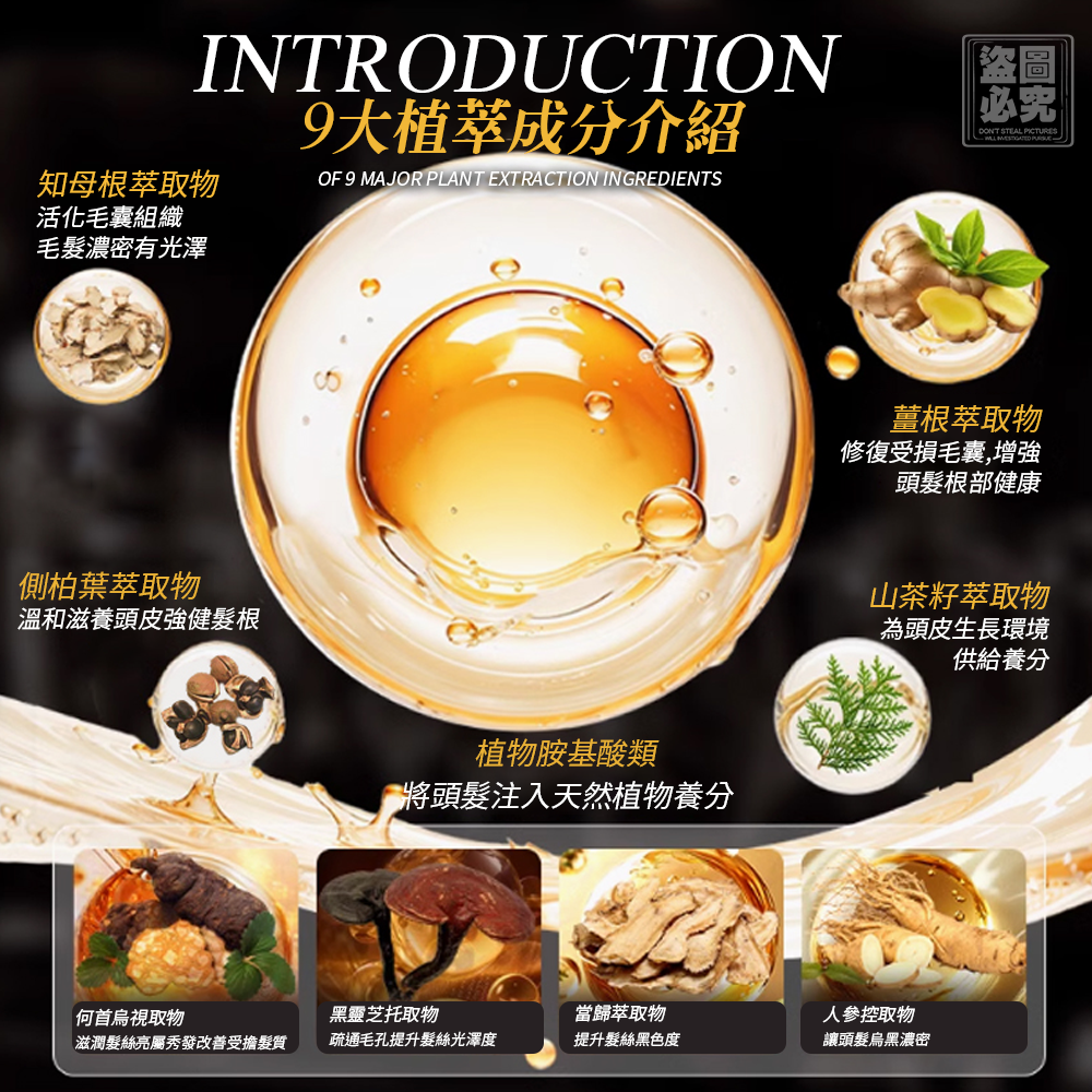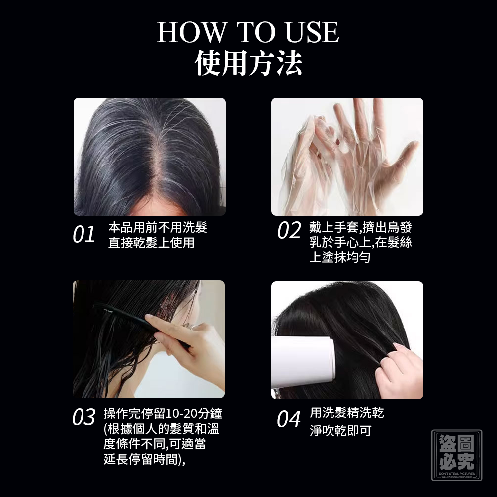楚顏白轉黑芳香烏髮露,植物萃取,溫和配方,快速遮蓋白髮,持久固色,染髮 + 洗髮2效合1!