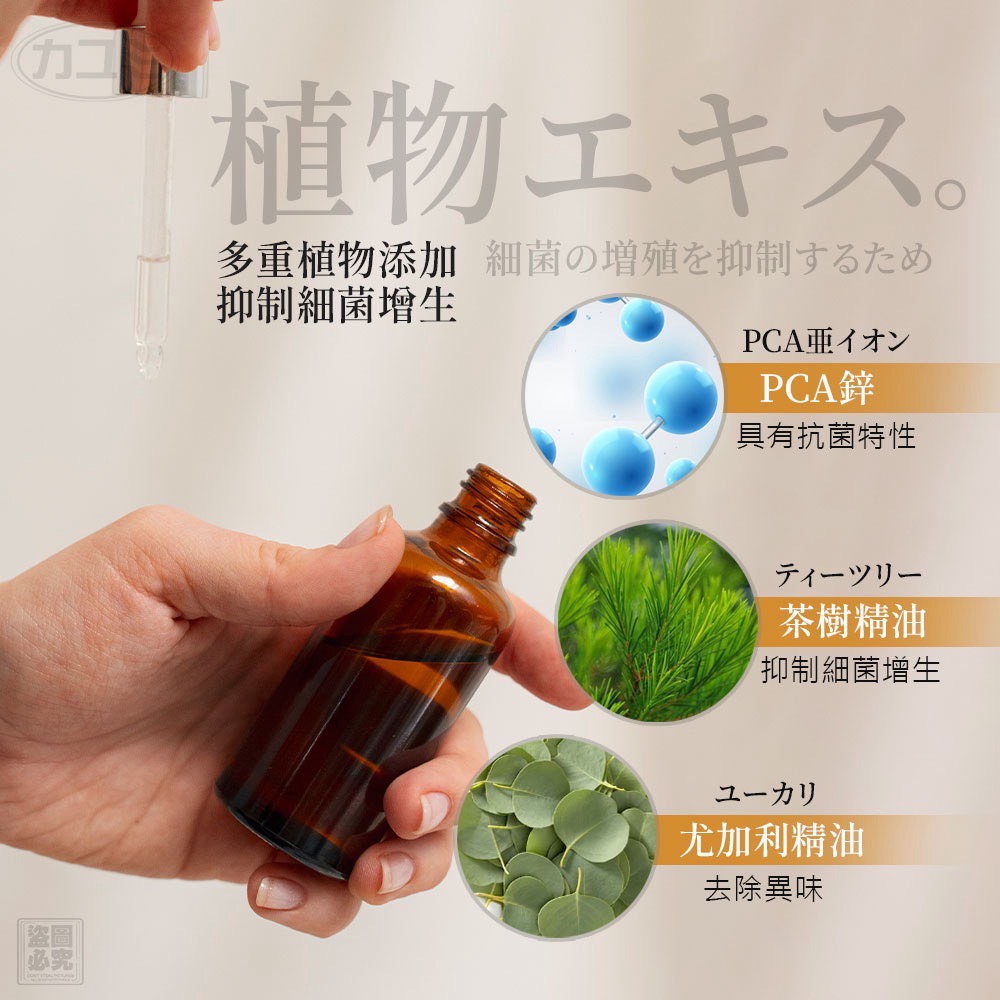 成分:茶樹精油、尤加利精油、PCA鋅、日本柿子除臭成分等