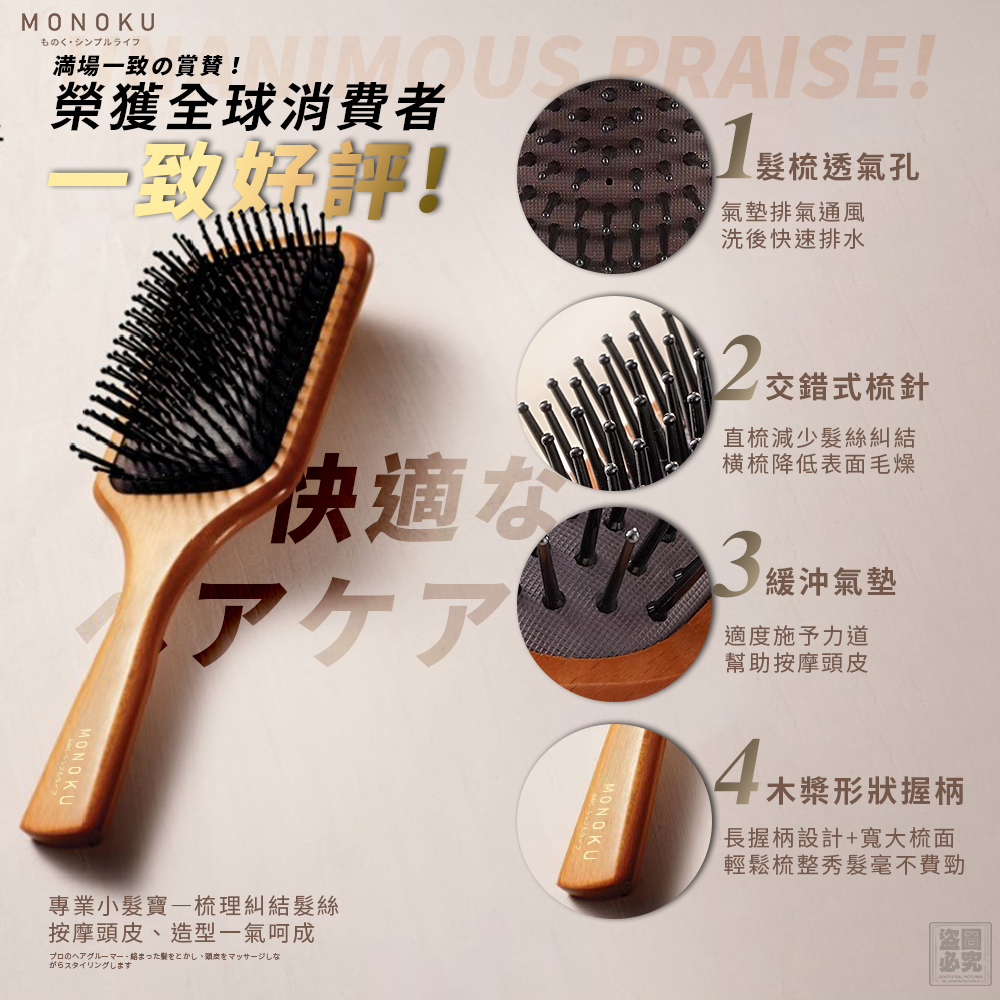 ❤️日本MONOKU-實木護理氣墊梳