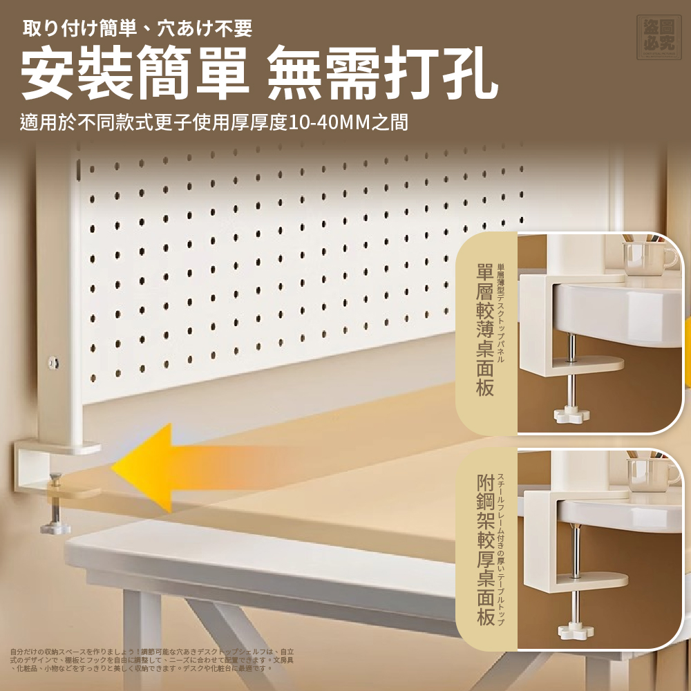 適用厚度10~40mm桌板,租屋族友善超貼心!