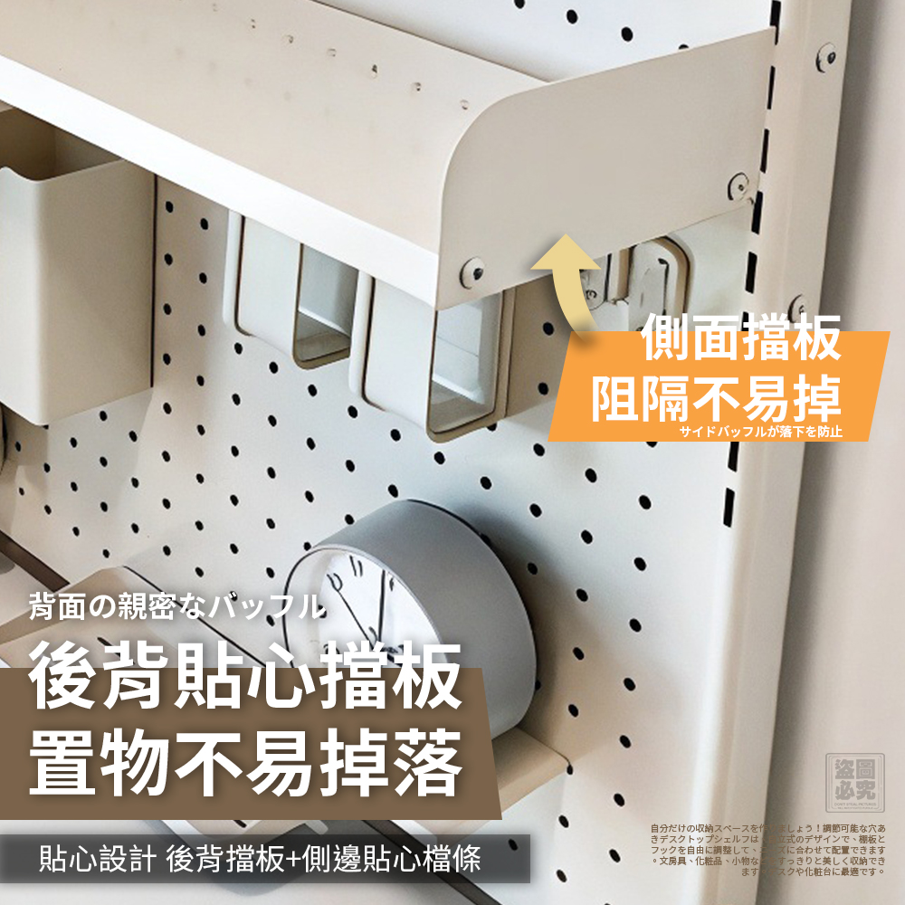 側邊+背部擋板設計,防止物品掉落、歪斜