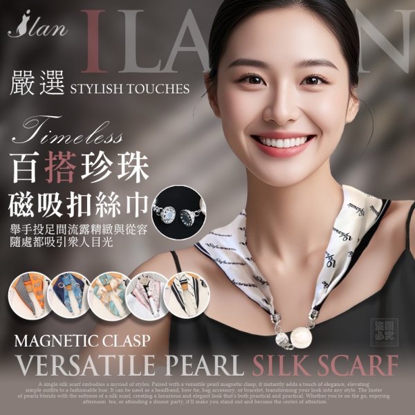 👒ILAN百搭珍珠磁吸扣絲巾👒
