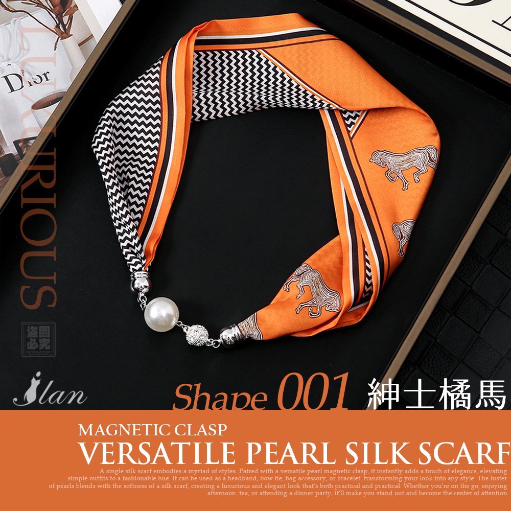 【ILAN嚴選-百搭珍珠磁吸扣絲巾】