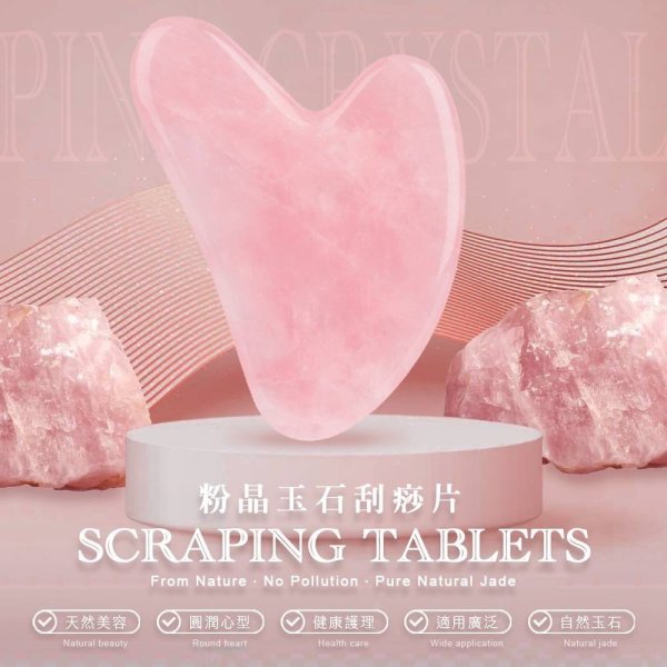🔥天然粉晶玉石 心型紓壓刮痧板 (盒裝)