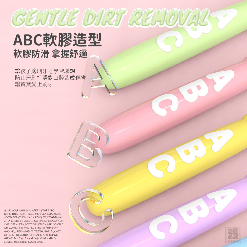 🔹刷柄ABC軟膠造型,邊刷牙邊認字母