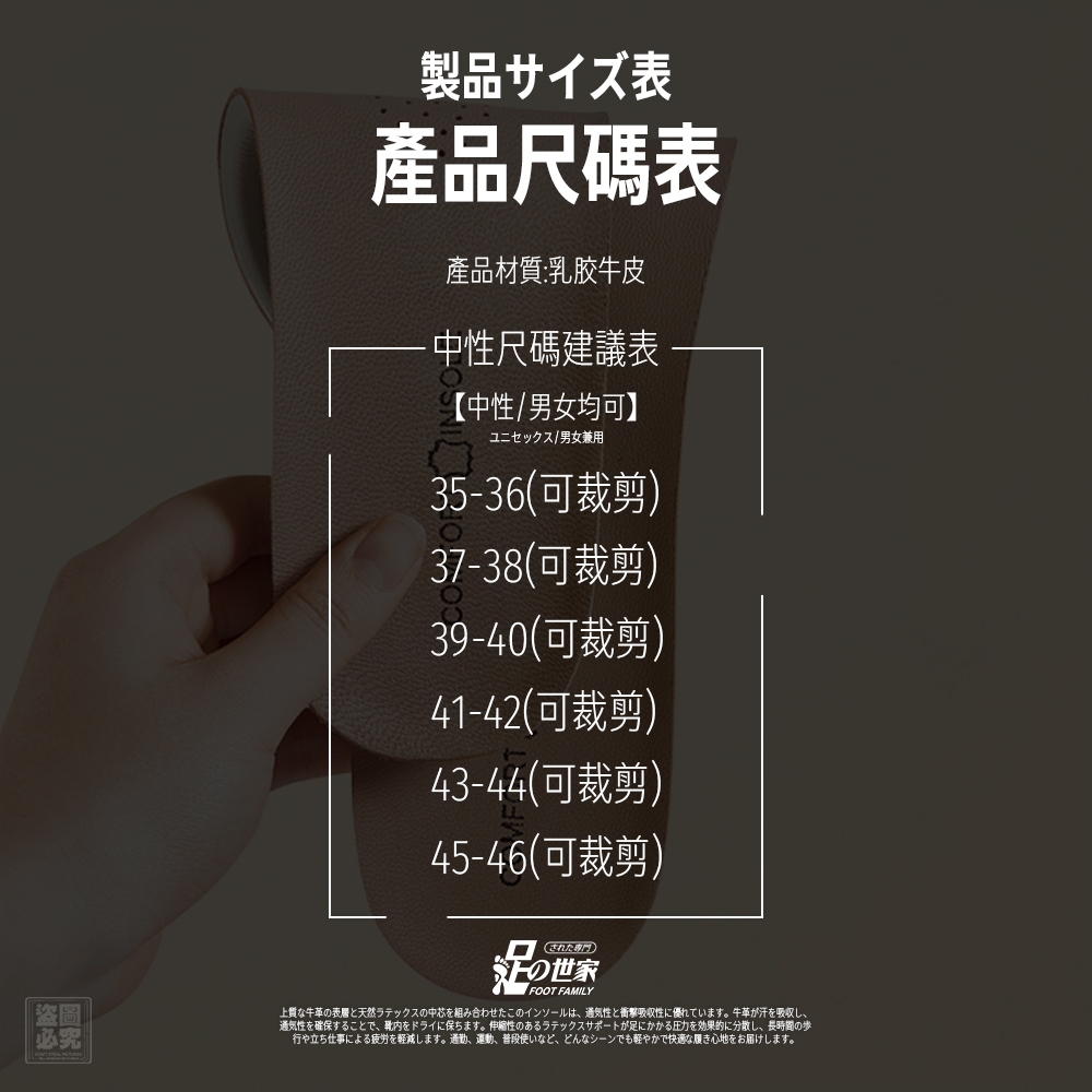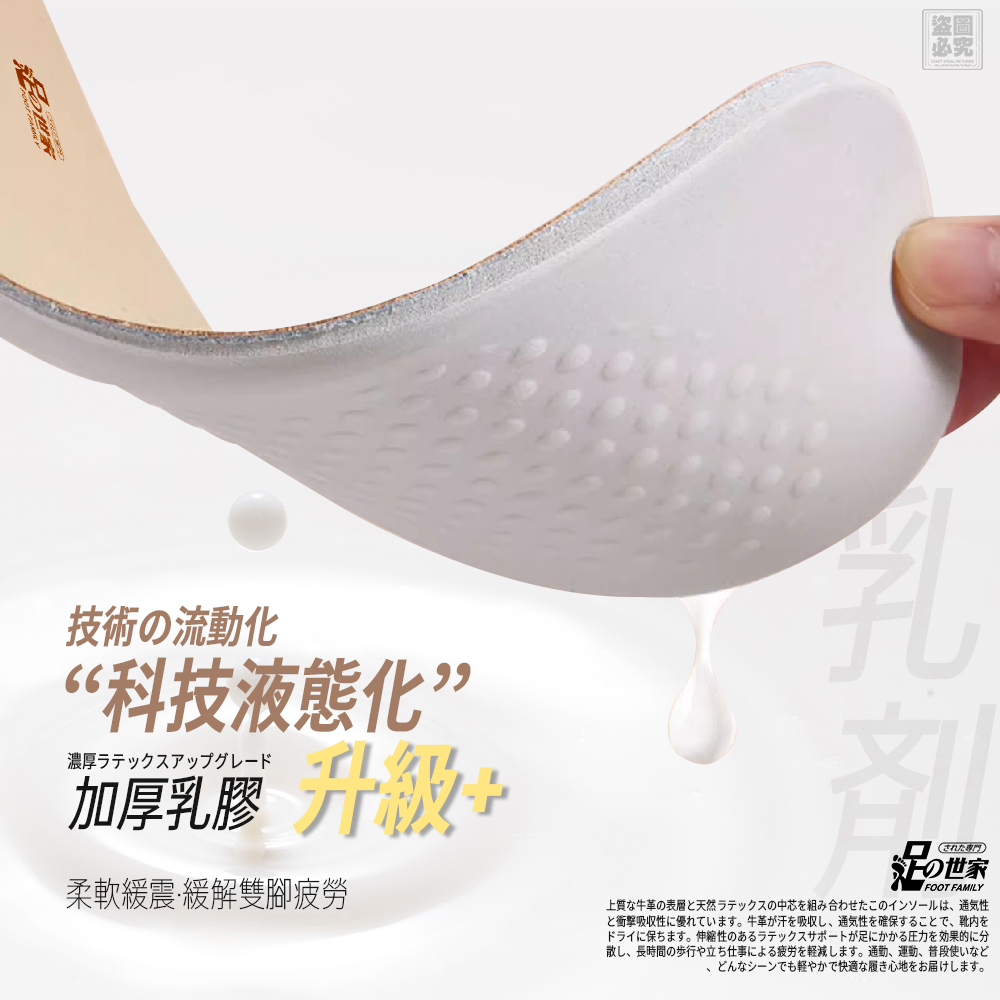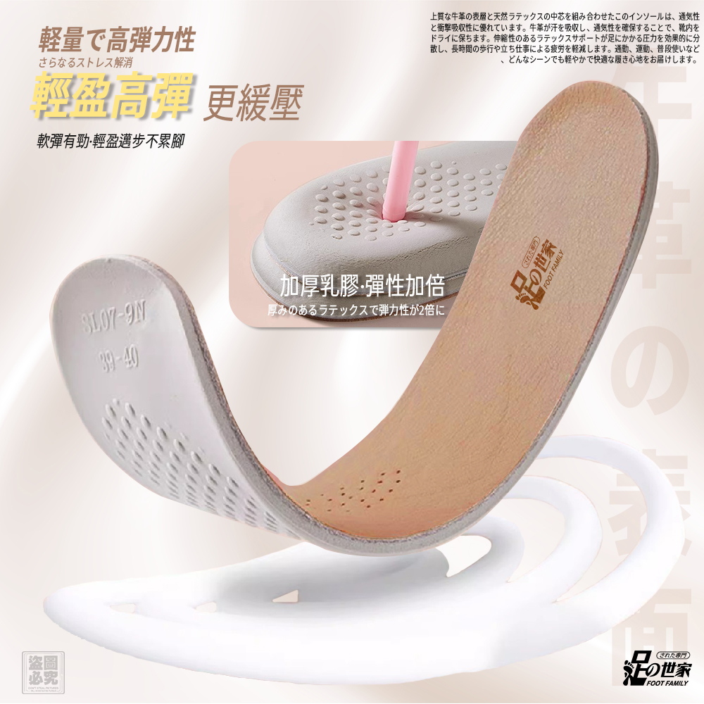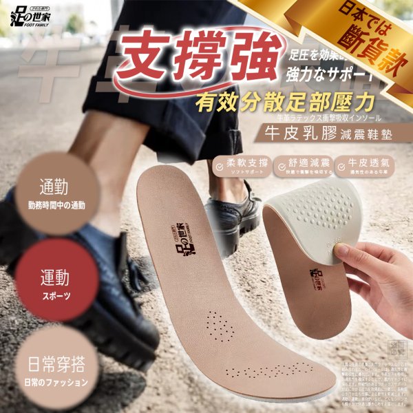 【足の世家-牛皮乳膠減震鞋墊】