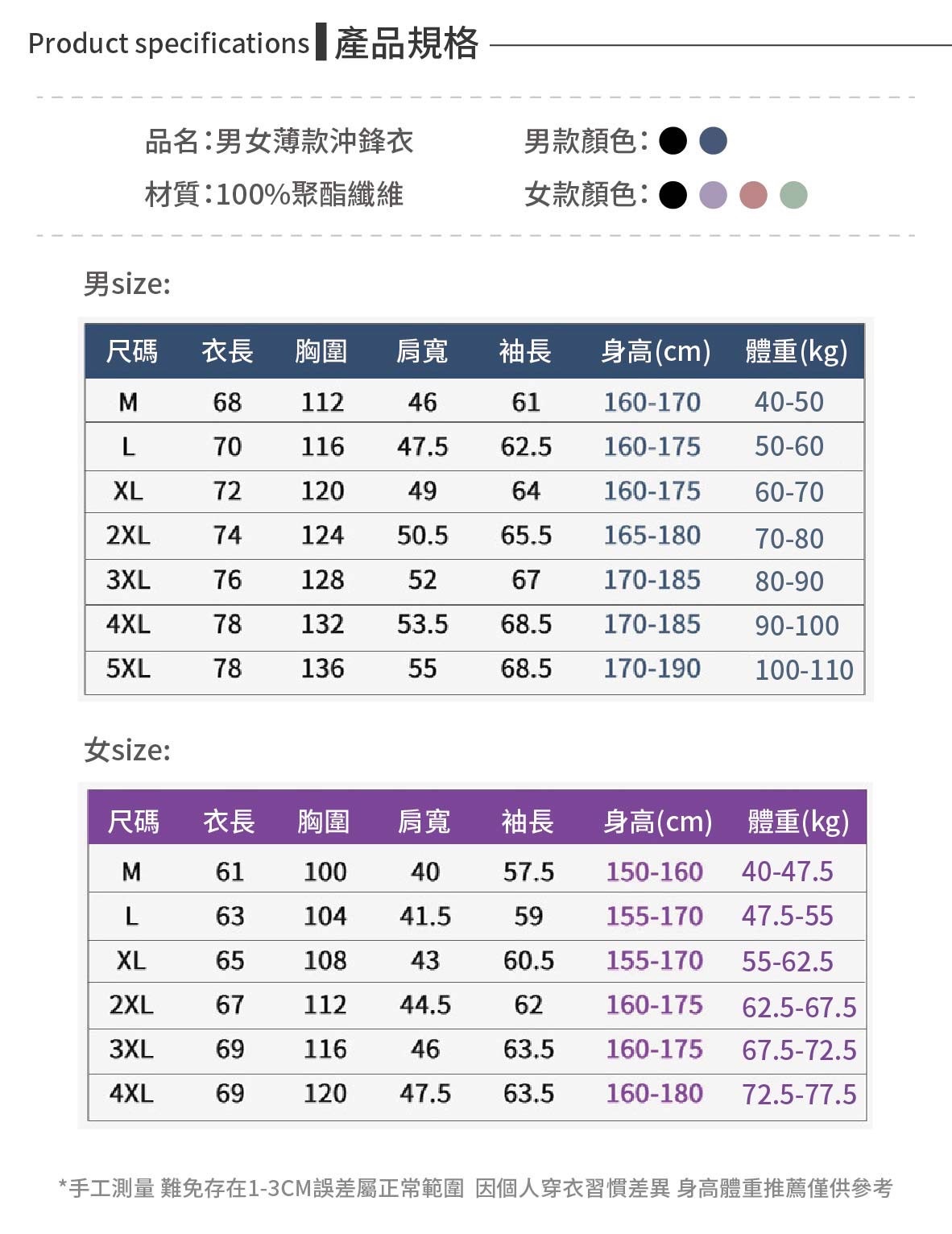 女size:M-4XL(詳情見圖表)