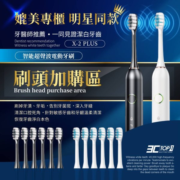 ❤️3C-TOP1-智能超聲波電動牙刷-刷頭加購區
